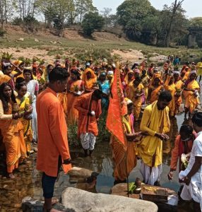 सोमवार, 30 मार्च 2026 को प्रातः 7 बजे भव्य कलश यात्रा के साथ कार्यक्रम का शुभारंभ हुआ। इस दौरान महिलाएं पारंपरिक वेशभूषा में सिर पर कलश धारण कर शामिल हुईं। कलश यात्रा कोकिया नदी तक निकाली गई, जहां से विधिवत जल भरकर श्रद्धालु वापस कथा स्थल पहुंचे। इसके पश्चात पंडितों द्वारा वैदिक मंत्रोच्चार के बीच पूजा-अर्चना संपन्न कराई गई, जिससे पूरा वातावरण भक्तिमय हो उठा।