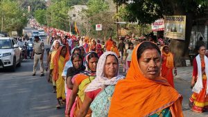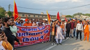 जशपुरनगर :- कुनकुरी के हाली क्रास नर्सिंग कॉलेज की छात्र अमीषा बाई पर मतांतरण के लिए दबाव बनाये जाने के विरोध में विश्व हिंदू परिषद और बजरंग दल ने संयुक्त रूप से हिंदू आक्रोश रैली का आयोजन किया। इस रैली में शामिल होने के लिए जिले भर से सैकड़ो की संख्या में हिंदू समाज के महिला पुरुष एकजुट हुए थे। पदयात्रा सलियाटोली से शुरू हुई। हॉली क्रास नर्सिंग कॉलेज में मतांतरण के लिए छात्रा ओर दबाव बनाये जाने के विरोध में नारेबाजी करते हुए रैली सलियाटोली से रवाना हुई। रैली का नेतृत्व आचार्य राकेश,बजरंग दल के जिलाध्यक्ष विजय आदित्य सिंह जूदेव ने किया। सलियाटोली से तहसील कार्यालय,पुलिस थाना होते हुए रैली जय स्तम्भ चौक पहुंची। यहां आकर रैली धरने में बदल गईं। रैली को सम्बोधित करते हुए संत आचार्य राकेश ने कहा कि सेवा की आड़ में चल रहे मतांतरण का खेल,नर्सिंग कॉलेज में हुई घटना से खुल कर सामने आ चुका है। उन्होंने कहा कि उस तरह की घटनाओ को सनातन समाज बर्दाश्त करने के लिए बिलकुल तैयार नहीं है। घटना के विरोध और दोषियों की गिरफ्तारी की मांग को लेकर आक्रोश रैली का आयोजन किया गया है। इसके बाद भी अगर प्रशासन ने दोषियों को गिरफ्तार नहीं किया तो इससे बड़ा आंदोलन किया जाएगा। बजरंग दल के जिलाध्यक्ष विजय आदित्य सिंह जूदेव ने कहा कि अमीषा बाई के साथ जो कुछ भी हुआ वह हिन्दुओ की आस्था और उनकी परम्पराओ पर कुठाराघात है। उन्होंने कहा कि इस मामले में कलेक्टर और एसपी से शिकायत के बाद भी प्रशासन द्वारा की गईं कार्रवाई की जानकारी आधिकारिक रूप से सार्वजनिक नहीं की गईं और ना ही संस्था के विरुद्ध कोई कार्रवाई नहीं की गईं है। इससे हिन्दूओ में नाराजगी व्याप्त है। अपनी इस नाराजगी को व्यक्त करने के लिए आक्रोश रैली का आयोजन किया गया है। अगर प्रशासन ने नर्सिंग कॉलेज की महिला प्राचार्य को गिरफ्तार कर,मान्यता रद्द करने की कार्रवाई नहीं की तो आगे उग्र आंदोलन किया जाएगा।