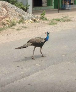 यह किसी की पालतु है या जंगल से भटक कर आई है.इसका कोई पुष्टि नहीं हैं.लेकिन आज इस मोर को मुख्य मार्ग से होते हुये बस स्टैंड जाते देखा गया.इस दौरान कुछ लोगों को इसका वीडियो बनाने की होड़ देखी गई.हालांकि कुछ लोगो ने वीडियो बनाकर शोसल मीडिया में वायरल किया.बीच सड़क में आते-जाते समय मोटरसाइकिल सहित बड़ी वाहनों के आवाजाही में अगल-बगल जाते देखा गया.इसके साथ ही आवारा कुत्तों का खतरा बना हुआ हैं।